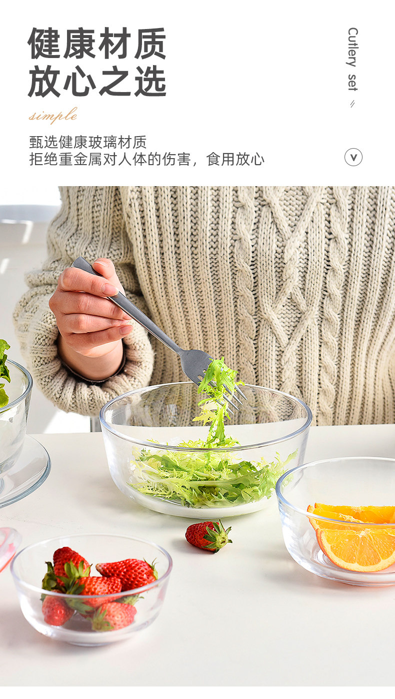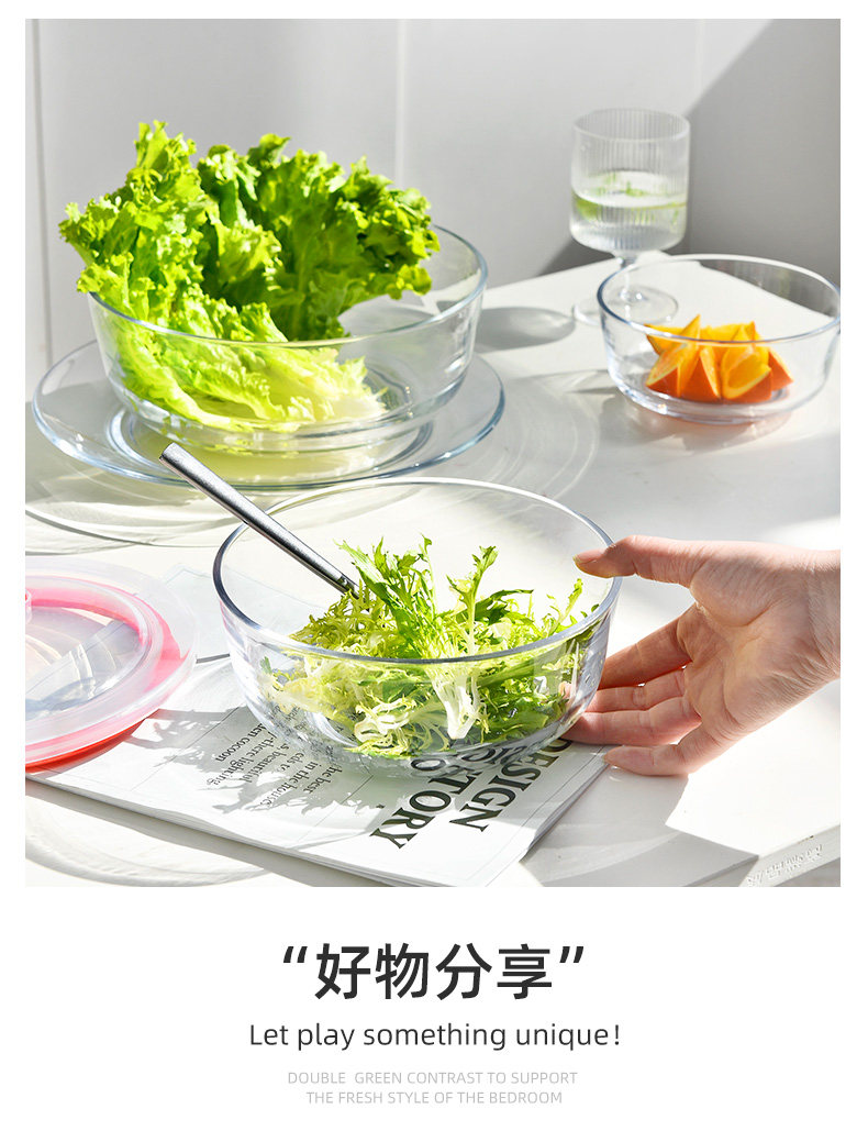 玻璃碗耐高温家用沙拉碗透明大碗