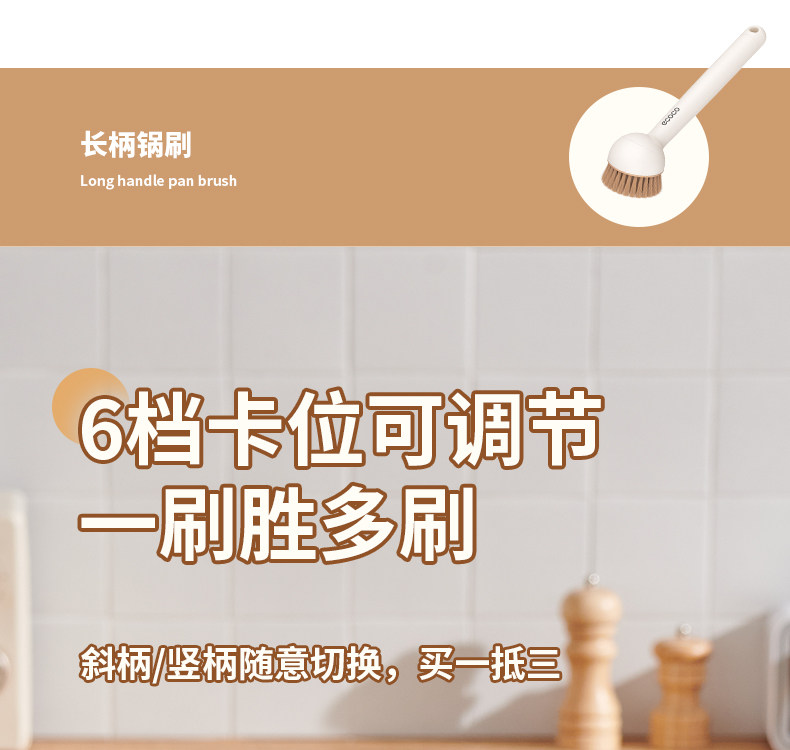 【长柄锅刷/1个装】奶油色(兼用深浅口锅型)